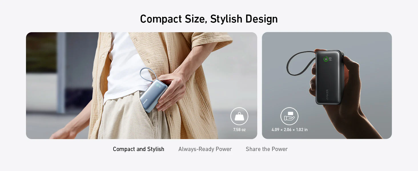Anker 545 Nano powerbank 10K z vgrajenim kablom USB-C